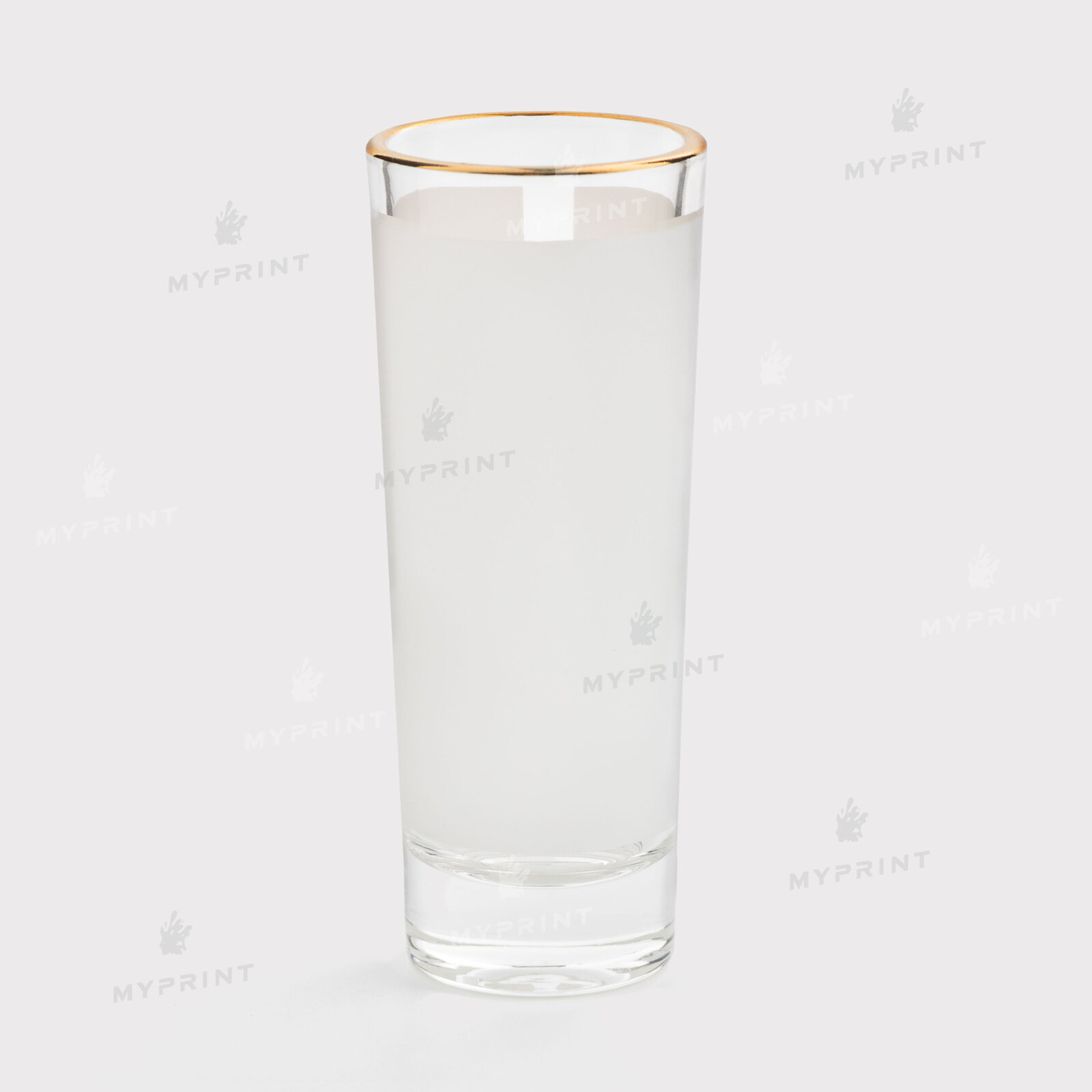 - Чарка для сублімації скляна з областю для друку та золотим обідком 3 Oz (90 мл)