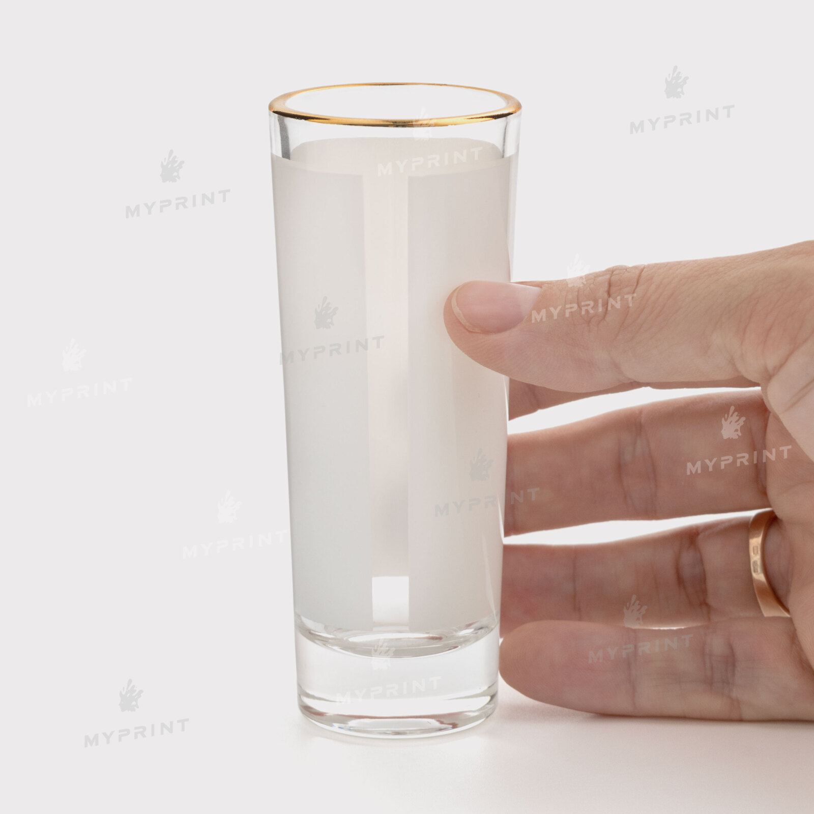 Опис Чарка для сублімації скляна з областю для друку та золотим обідком 3 Oz (90 мл) (12098)