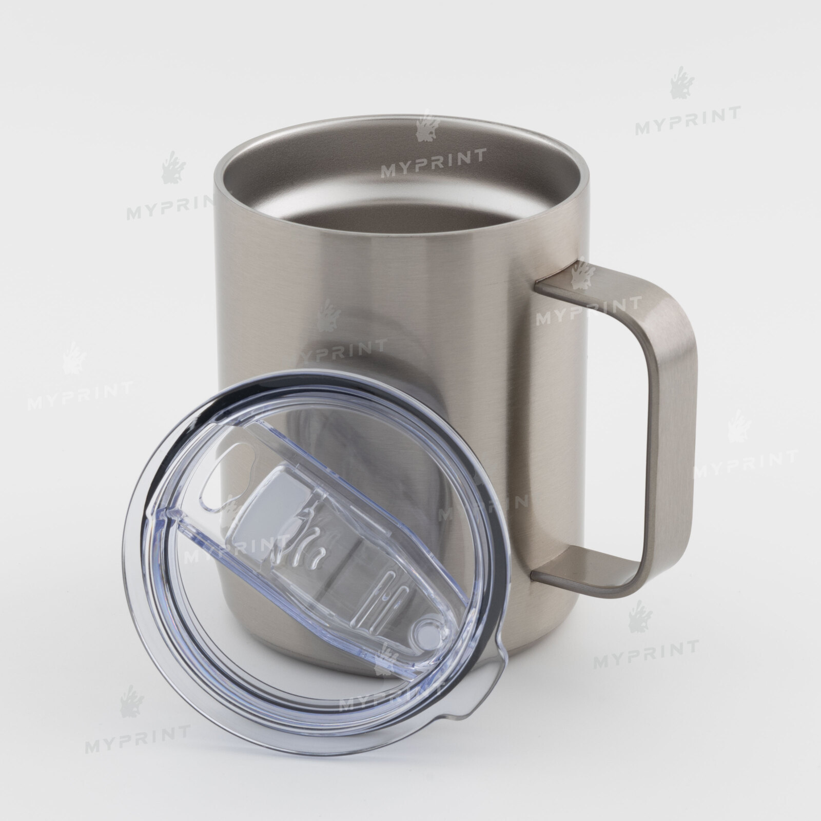 Процес завершений. Термочашка для сублімації "Yeti" з ручкою срібляста (350 мл) тепер не просто заготовка, а готовий виріб з унікальним зображенням або фотографією.
