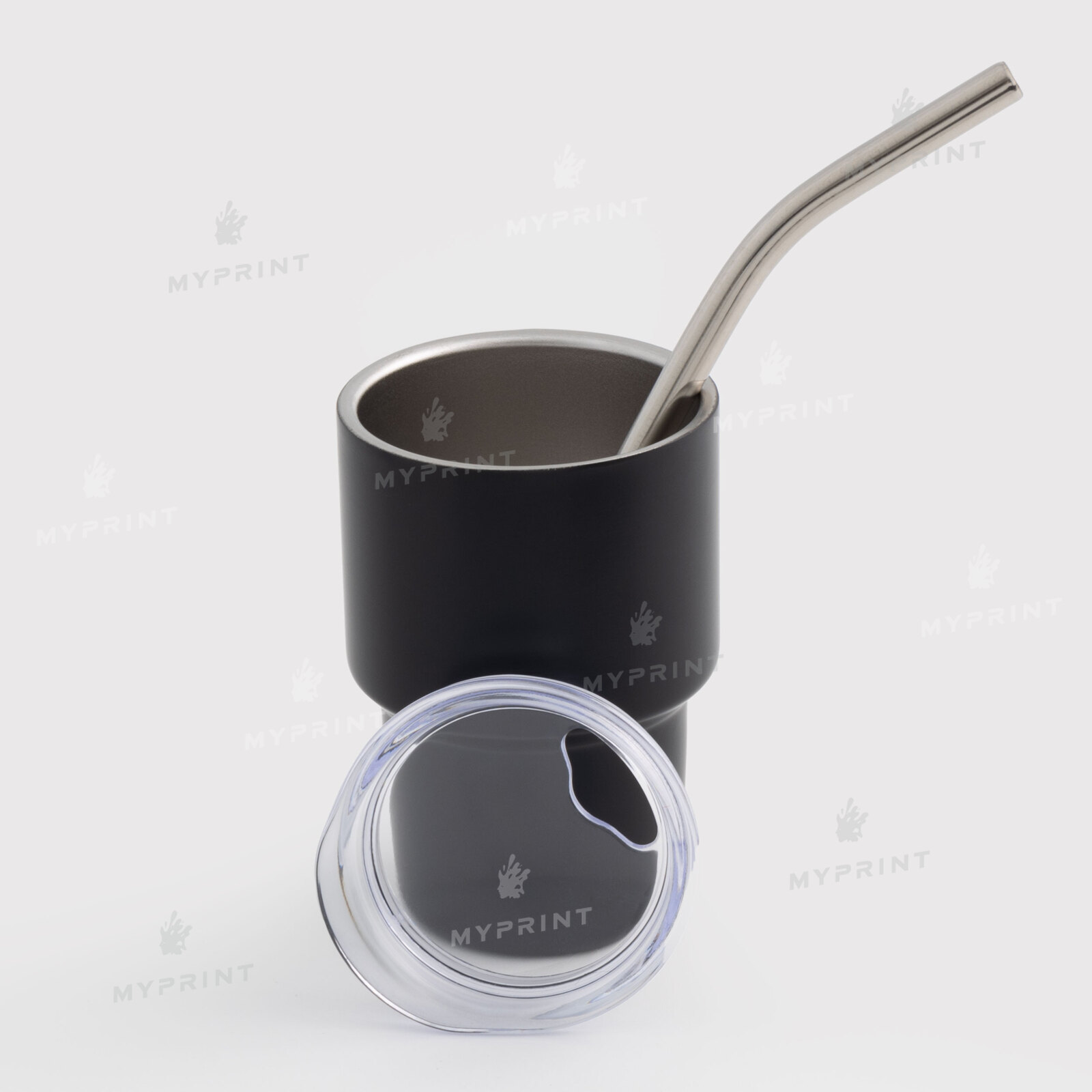 Термостакан з металевою трубочкою матовий чорний 70 мл (10586)