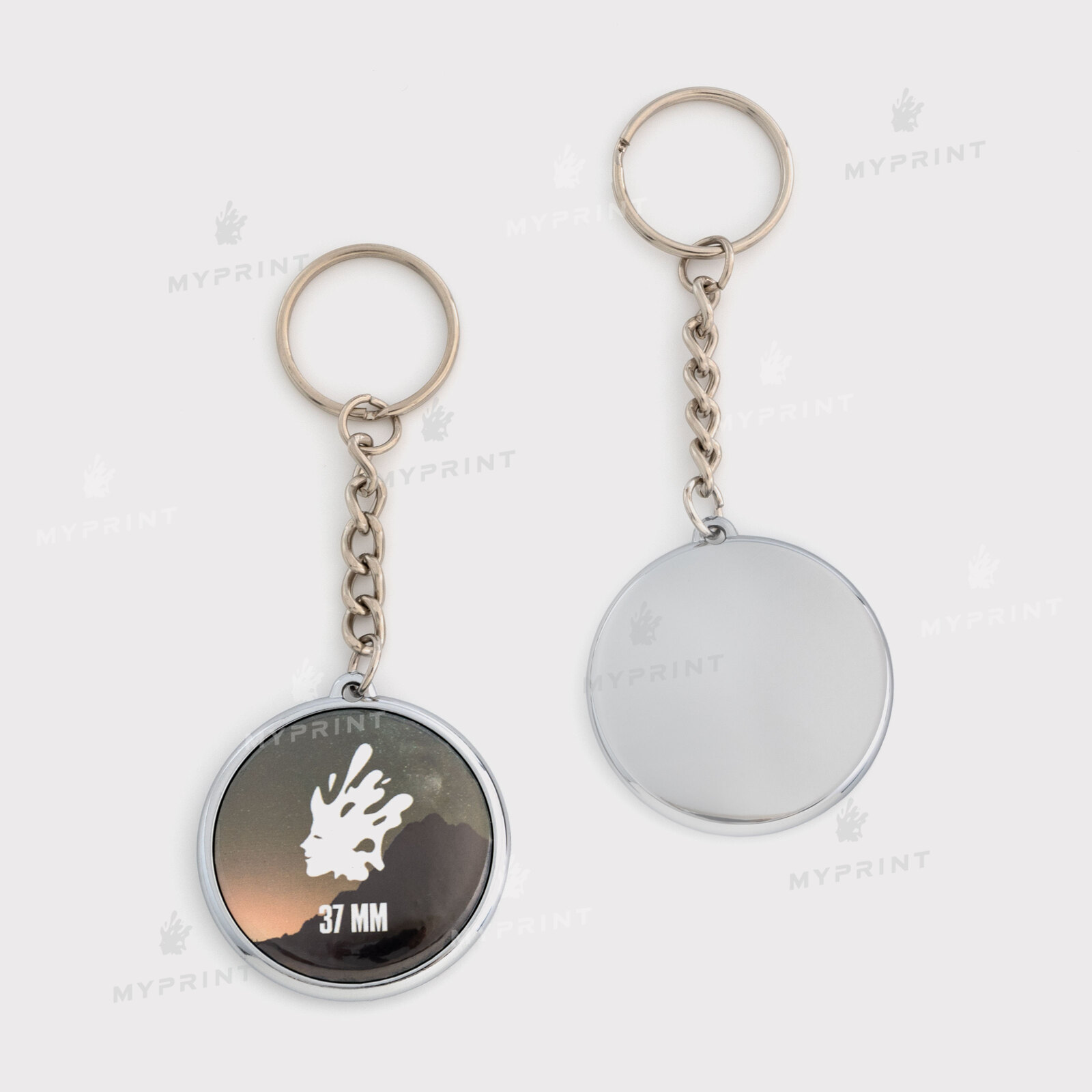 Процес завершено. Заготовка для закатного брелока одностороннього 37 мм тепер готовий виріб з унікальним зображенням або фотографією.