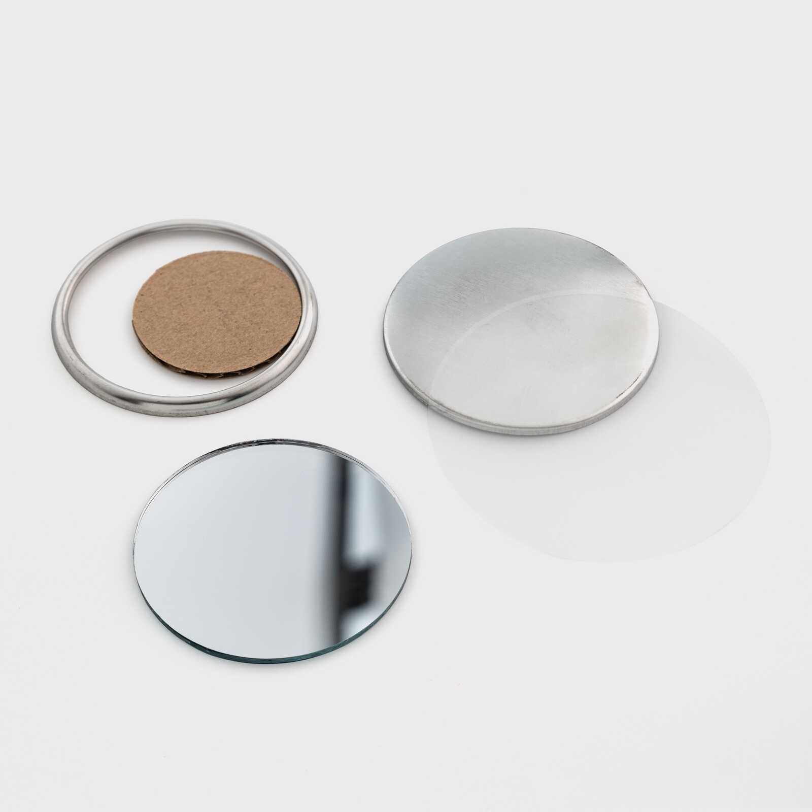 Процес завершено. Заготовка для закатного дзеркала 56 мм тепер готовий виріб з унікальним зображенням або фотографією.