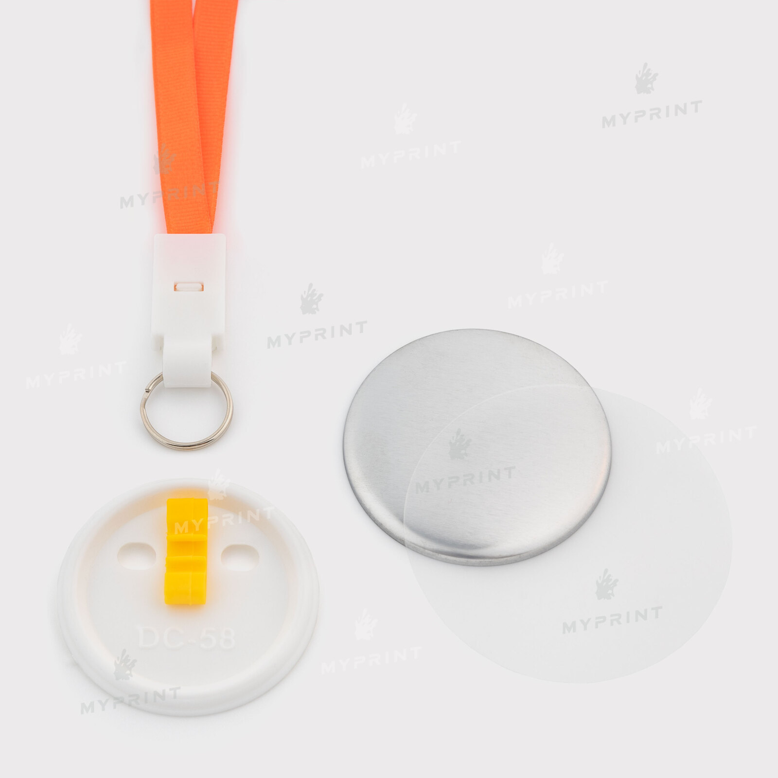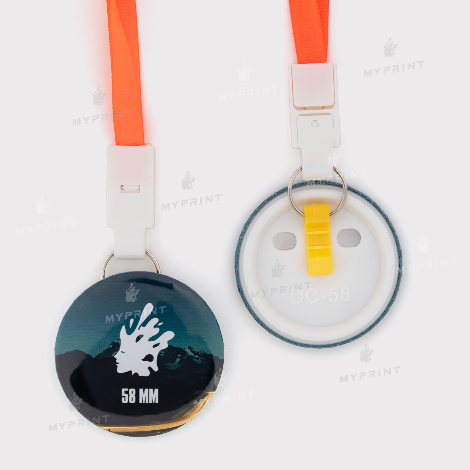 Процес завершено. Заготовка для закатної медалі 58 мм з помаранчевою стрічкою My Print ptb58 тепер готовий виріб з унікальним зображенням або фотографією.